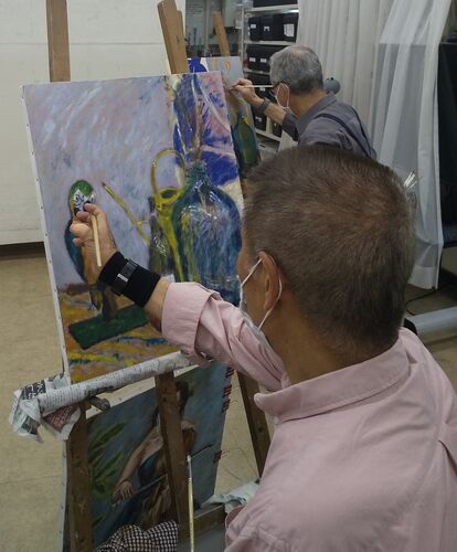 藤沢の朝日カルチャーから、徳弘亜男先生(国画会)の 油絵・アクリル画教室が移転してきました。 アクリルと油絵の具を使用します。 3回の授業で1作品を仕上げます。 モチーフがモダンで素敵です。 オウムは、中学生の生徒さんの作品です。モチーフどおり…