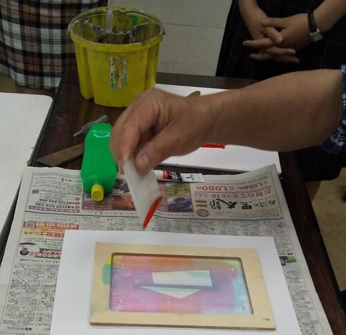 シルクスクリーン(孔版)は、木枠に張った布(シルク)に、 絵具の通る部分と通らない部分を作った版を乗せて、上から絵具をこすようにして下の紙に絵具を定着させる版画技法です。アンディ・ウォーホルが有名です。 井手先生所蔵の作品集を見せていただき…